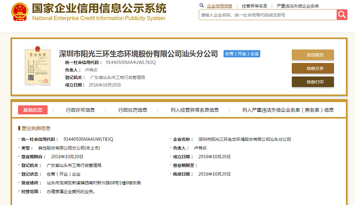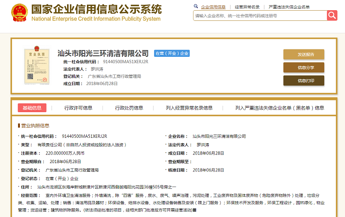 2、汕頭市陽光三環(huán)清潔有限公司