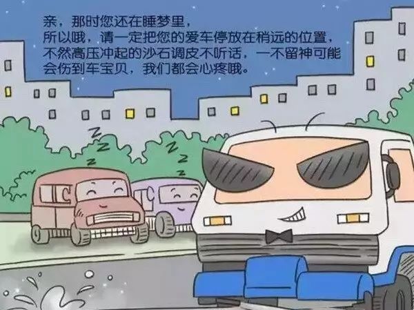 夜間高壓沖洗作業(yè)對停放在道路附近的車輛偶有沙石沖擊,停放車輛時(shí)注意按秩序停放,如造成不便,敬請諒解。