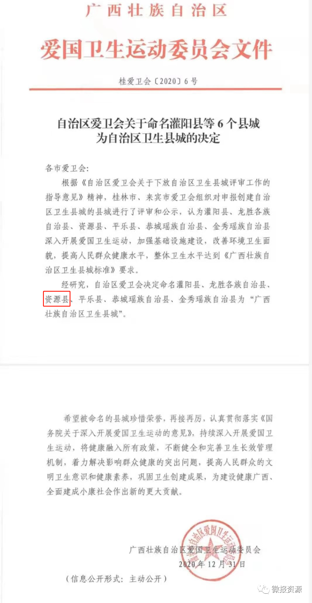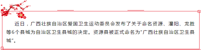 喜訊|祝賀資源縣榮獲“廣西壯族自治區(qū)衛(wèi)生縣城”稱號(hào)!