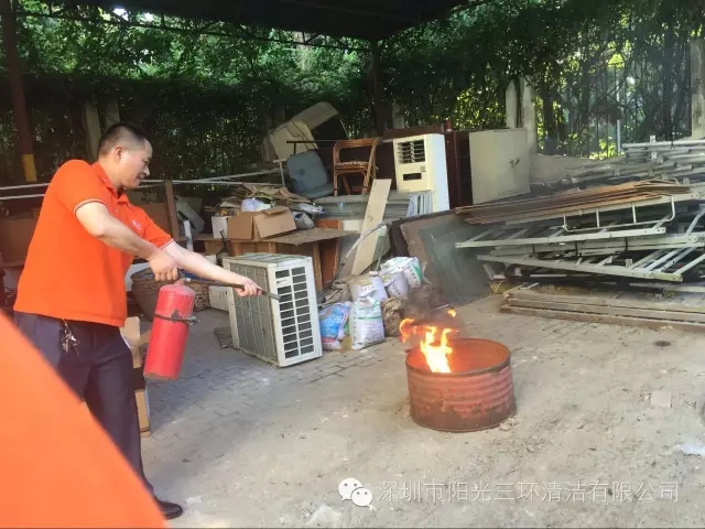 在培訓(xùn)中,陳作高主管為員工現(xiàn)場介紹了火災(zāi)發(fā)生時不同的救助方法、火災(zāi)預(yù)防和撲救知識、火場逃生常識及滅火裝備器材的使用等。其中,對手提式光粉滅火器、消防槍的正確使用,還進行現(xiàn)場演習(xí)。
