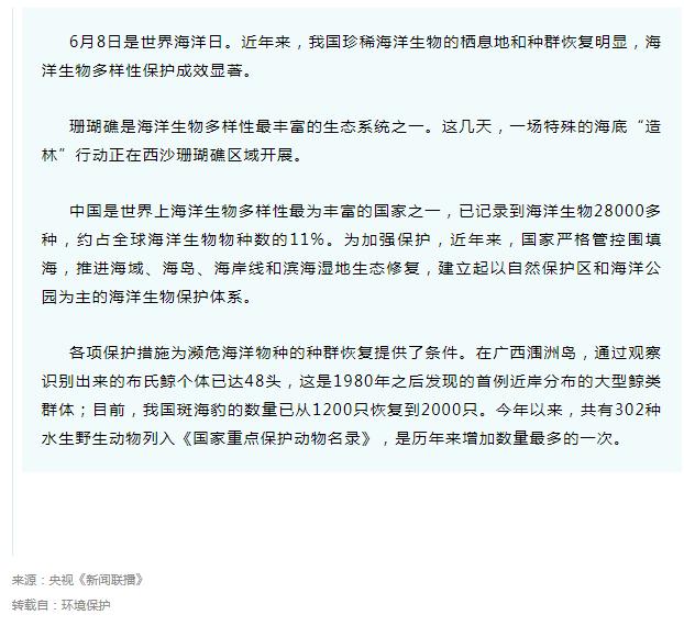 我國對海洋生物多樣性保護(hù)有多努力,一條視頻全懂了。