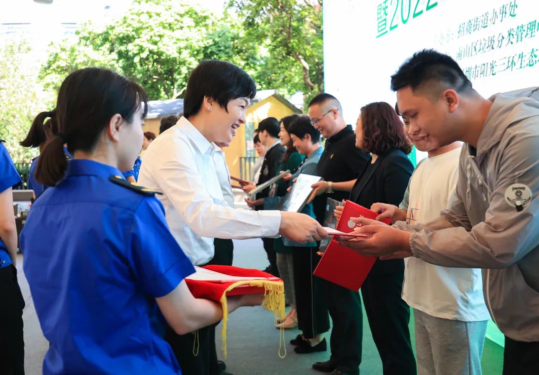 大會現(xiàn)場為獲得2021年南山區(qū)“生活垃圾分類綠色單位”“生活垃圾分類積極個人”“生活垃圾分類綠色小區(qū)”和“生活垃圾分類好家庭”頒獎,“綠色單位”代表、垃圾分類督導企業(yè)登臺分享垃圾分類工作感想,展現(xiàn)先進事例,樹立標桿和榜樣,進行正面引導,形成垃圾分類良好氛圍。