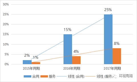 以北京國資委監(jiān)管的北控、首創(chuàng)、北環(huán)等三家涉及環(huán)衛(wèi)及垃圾收運業(yè)務(wù)的國企為例,近三年來市場占比逐年提高。這三家企業(yè)2015年1-7月份的新簽項目合同金額總計占全國總額的2%,新簽項目首年服務(wù)金額總計占全國總額的1%;而2017年1-7月份的占比則分別高達(dá)25%和8%。