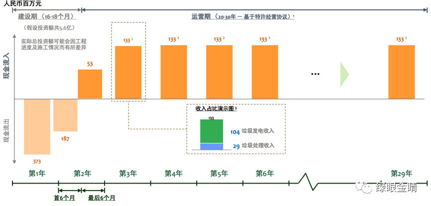 典型的垃圾焚燒發(fā)電項目為例,規(guī)模1000噸/日,其現(xiàn)金流如下: