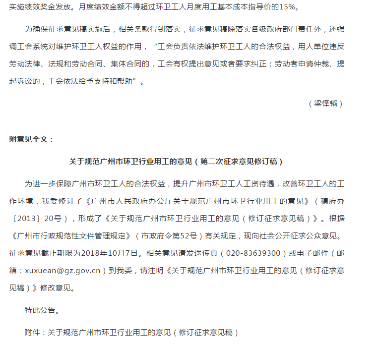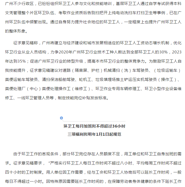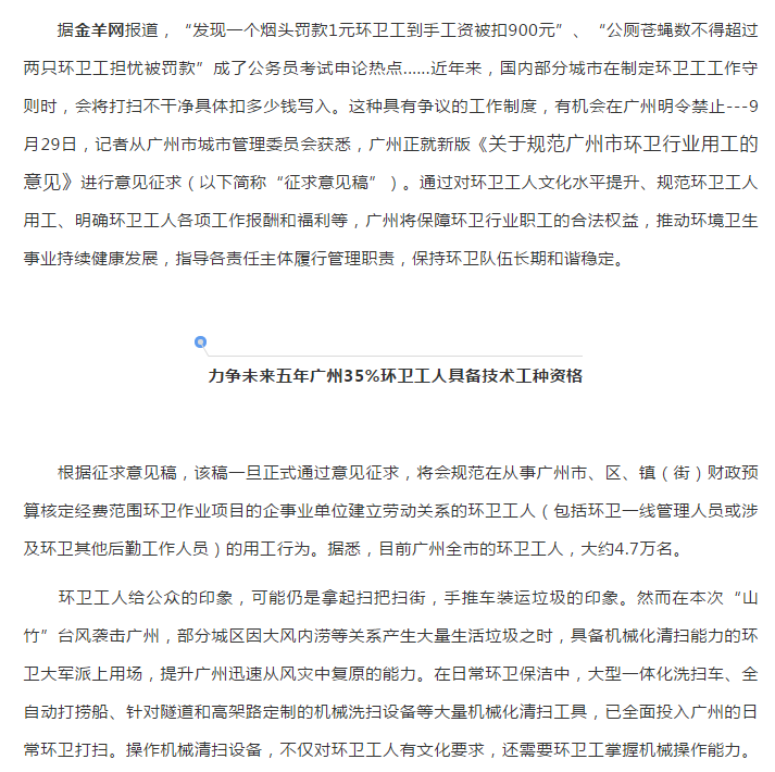 廣州擬出臺規(guī)范環(huán)衛(wèi)用工新政:禁止扣罰工資 不得以罰代管