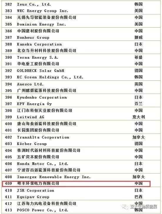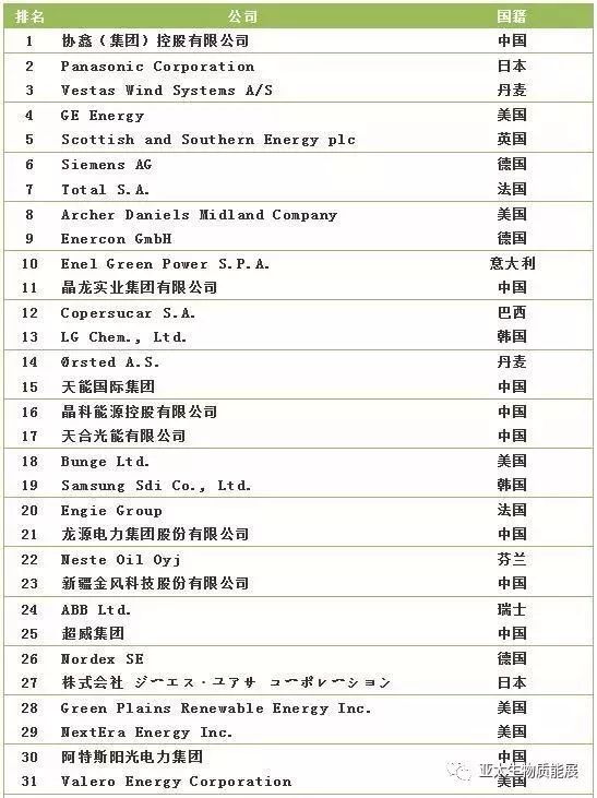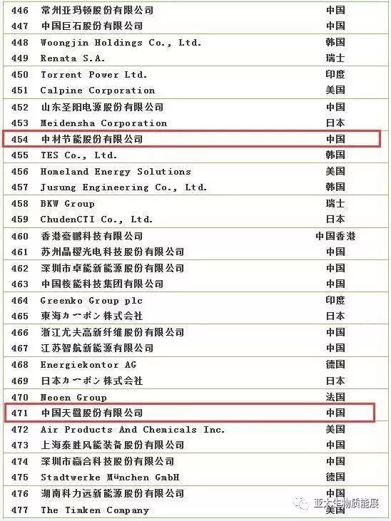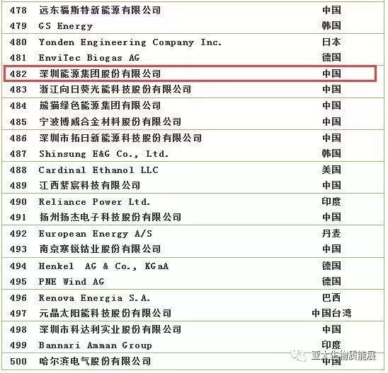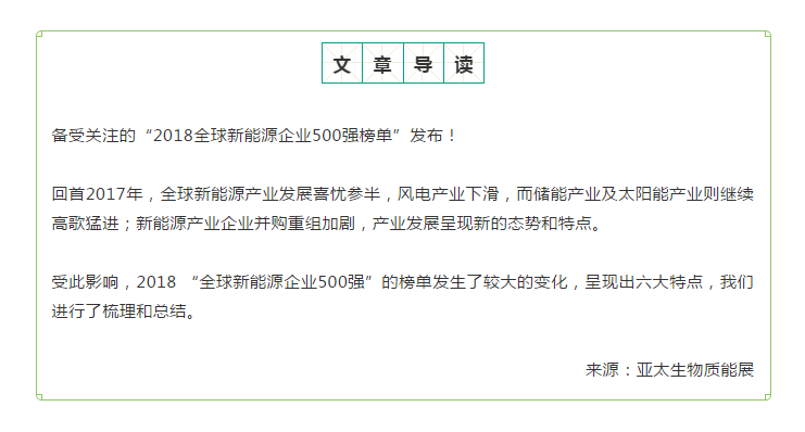 重磅|2018全球新能源企業(yè)500強(qiáng)榜單發(fā)布!45家生物質(zhì)發(fā)電企業(yè)上榜!(附名單)