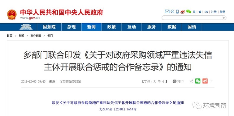 據(jù)了解,此次29個(gè)部門聯(lián)合簽署《合作備忘錄》,對(duì)政府采購(gòu)領(lǐng)域嚴(yán)重違法失信主體開(kāi)展聯(lián)合懲戒,旨在全面貫徹黨的十九大和十九屆二中、三中全會(huì)精神,以習(xí)近平新時(shí)代中國(guó)特色社會(huì)主義思想為指導(dǎo),落實(shí)《國(guó)務(wù)院關(guān)于印發(fā)社會(huì)信用體系建設(shè)規(guī)劃綱要(2014-2020年)的通知》《國(guó)務(wù)院關(guān)于建立完善守信聯(lián)合激勵(lì)和失信聯(lián)合懲戒制度加快推進(jìn)社會(huì)誠(chéng)信建設(shè)的指導(dǎo)意見(jiàn)》和《國(guó)家發(fā)展改革委人民銀行關(guān)于加強(qiáng)和規(guī)范守信聯(lián)合激勵(lì)和失信聯(lián)合懲戒對(duì)象名單管理工作的指導(dǎo)意見(jiàn)》等文件要求,加快推進(jìn)政府采購(gòu)領(lǐng)域信用體系建設(shè),建立健全失信聯(lián)合懲戒機(jī)制。